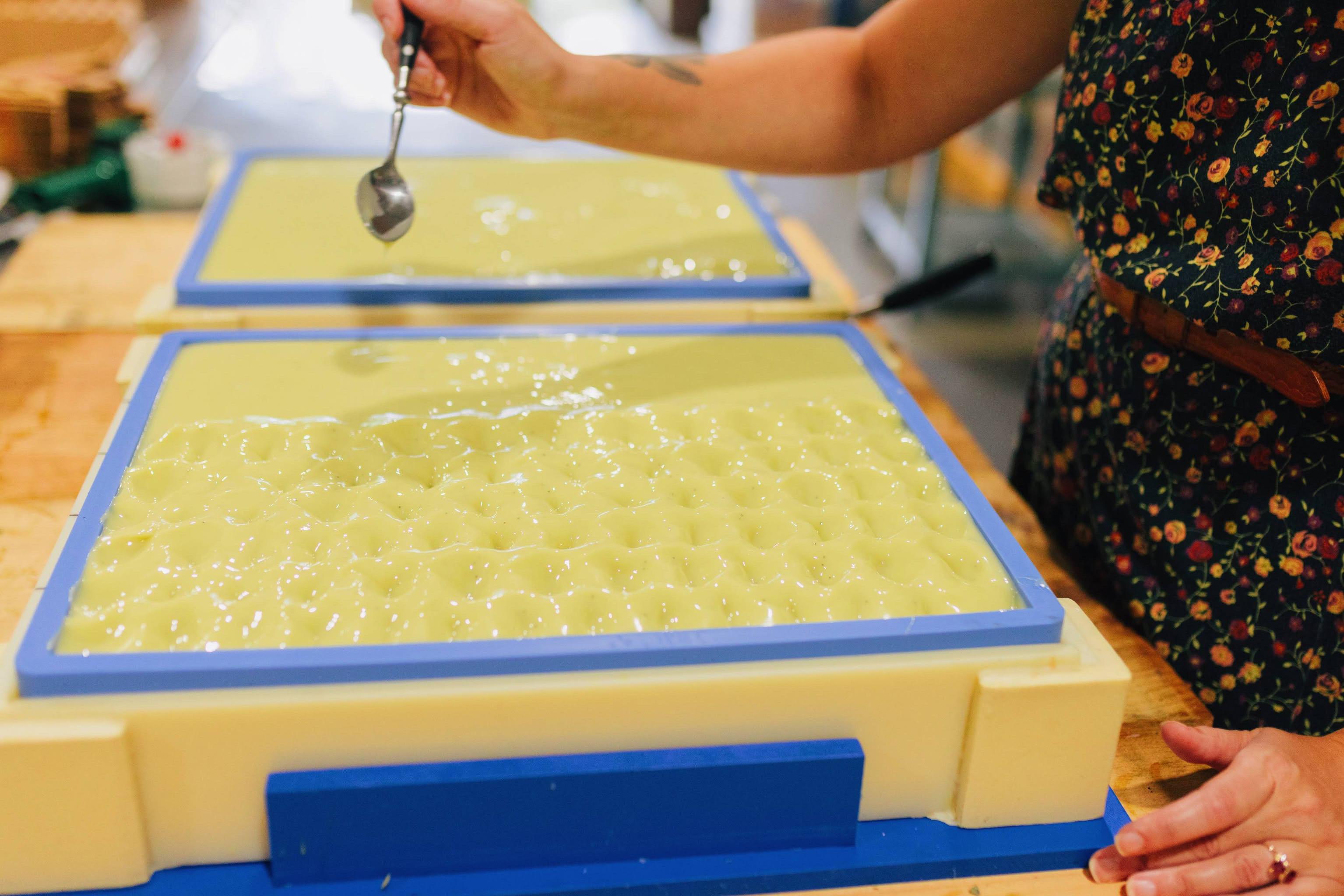 Full ingredients: olive oil, avocado oil, castor oil, organic coconut oil, raw shea butter, lye, mountain spring water, kaolin clay, calendula flowers, chamomile, and lavender pure essential oils