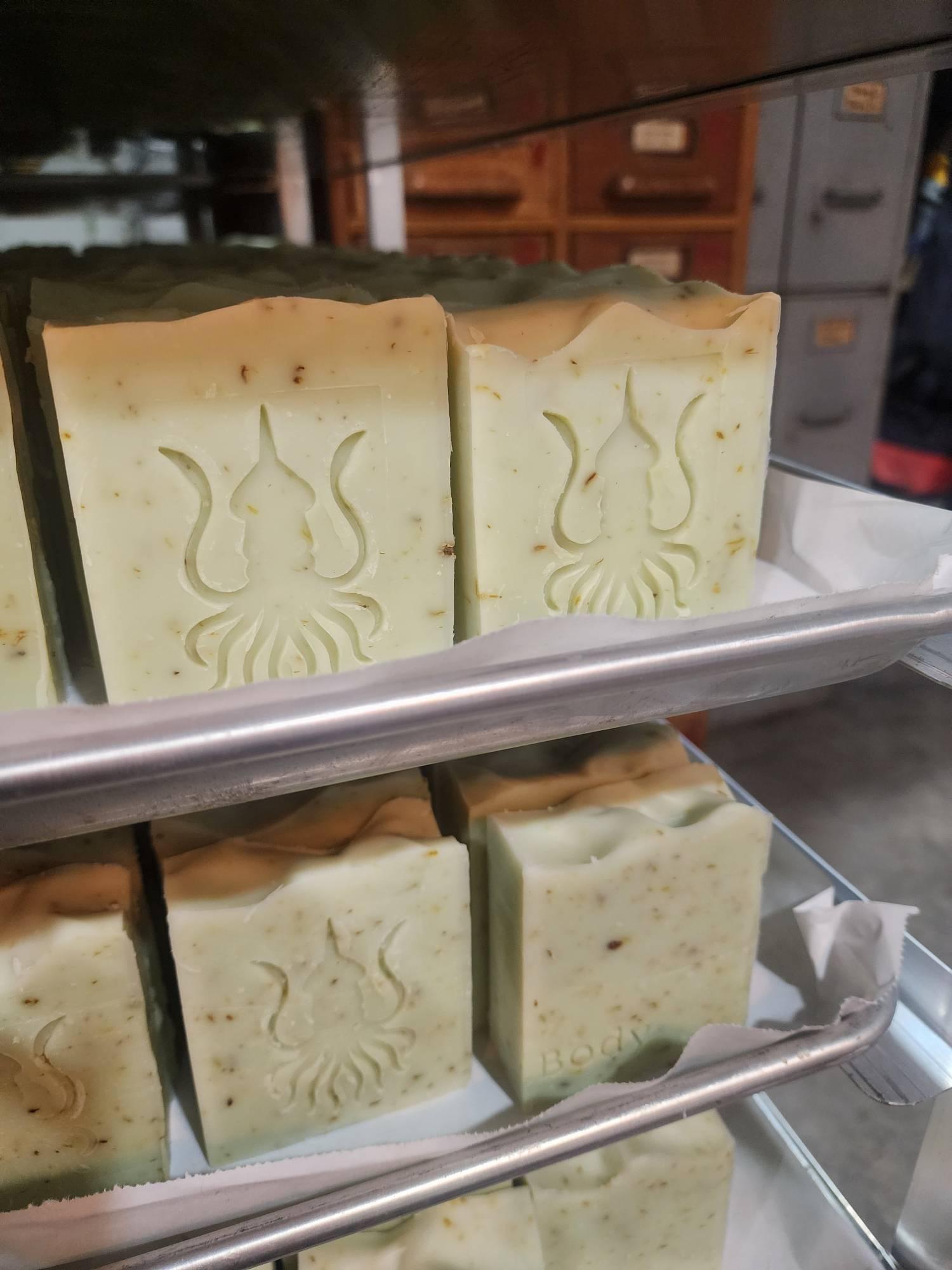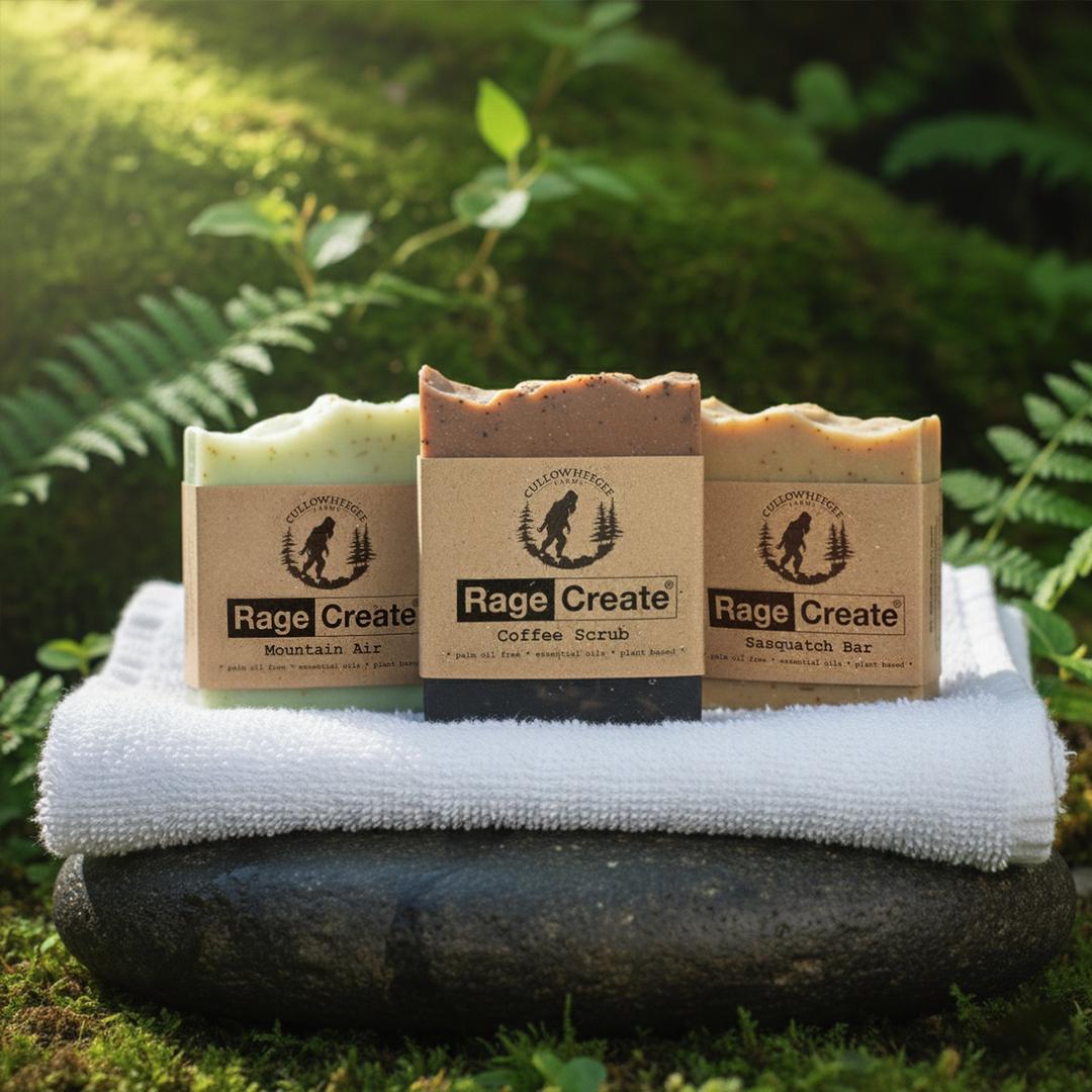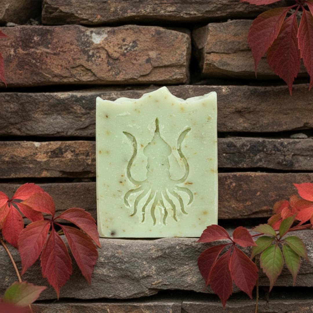 Handcrafted with a rich herbaceous essential oil blend of rosemary, cedarwood, tea tree, rosemary, and dark patchouli. This woodsy, earthy soap is like a spa day for Sasquatch himself! With neem's antifungal powers and skin calming properties, this bar can handle everything from rashes to wrestling with bears.